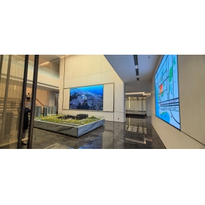 該項目相對較小,深圳龍程威尼根據用戶需求,以及營銷中心的行業性質,以聲光電數字沙盤展現為主,側方位墻體上以投影機進行輔助展示說明。